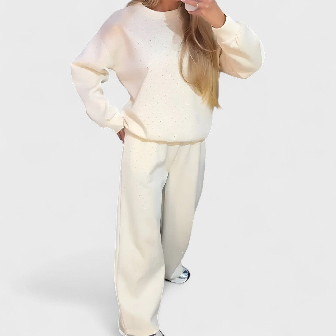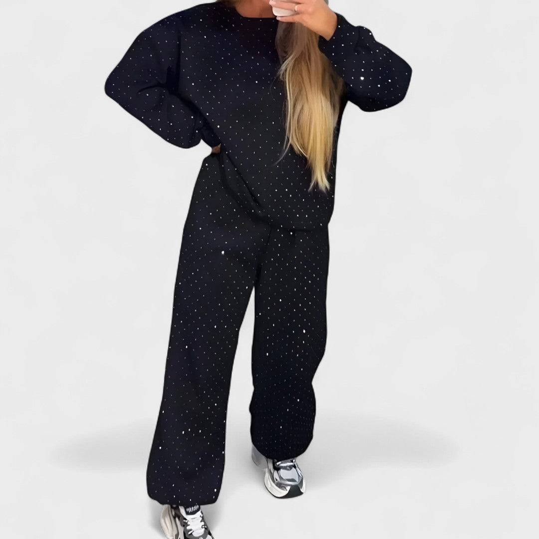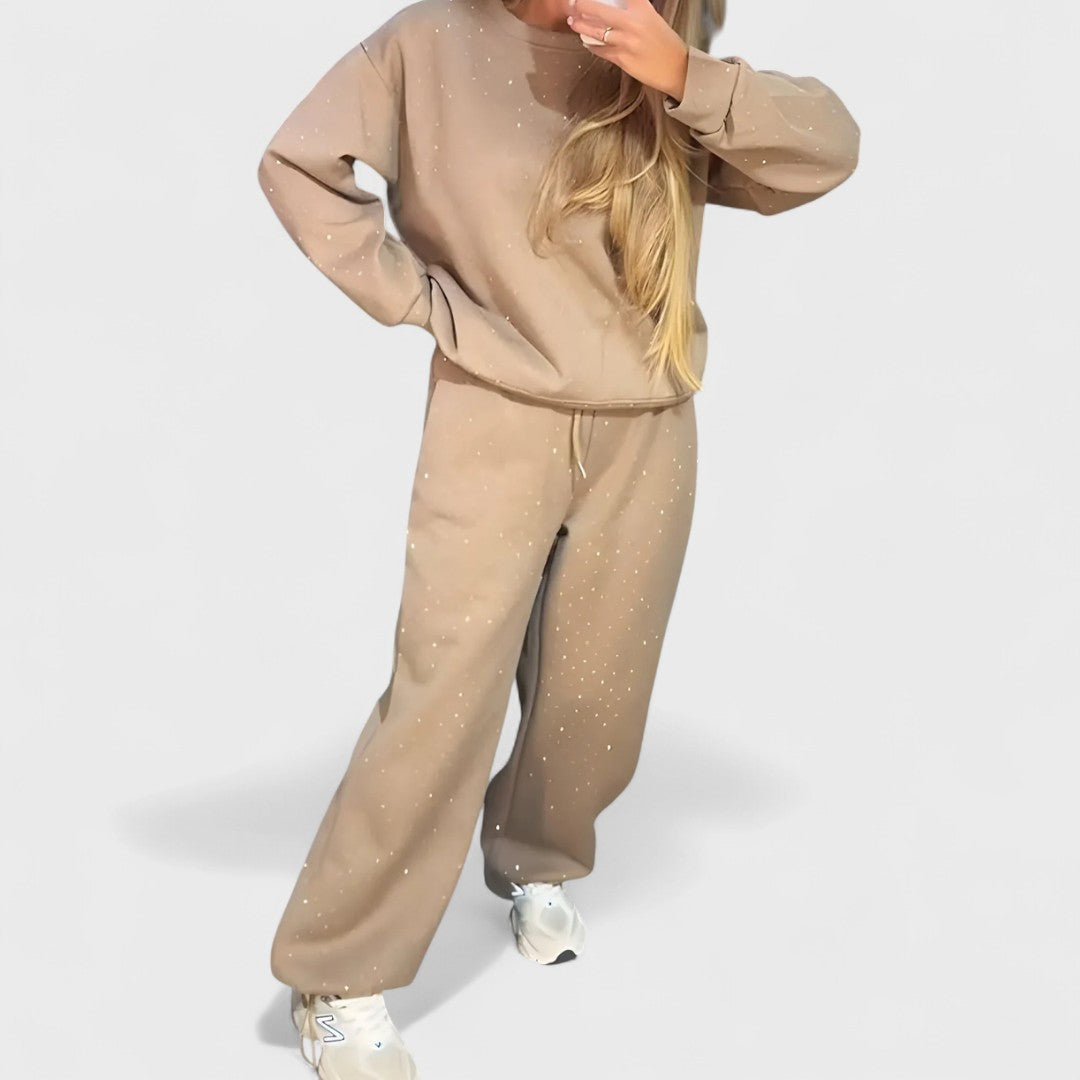 L’imposta Amélie combina comfort e raffinatezza in un design moderno arricchito da delicati dettagli brillanti. Perfetta per chi ama sentirsi comoda senza rinunciare a un tocco di eleganza, è ideale per il tempo libero, le uscite informali o i momenti di relax con stile. Realizzata in tessuto morbido e traspirante, accompagna i movimenti con leggerezza e dona un look luminoso e sofisticato.